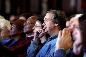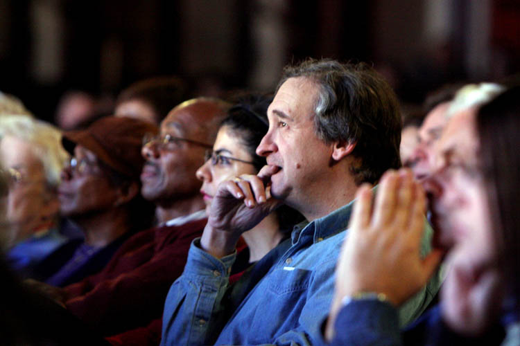 ![]() 百老汇常客、纽约郊区一家包装公司的副总裁David Isaacs(右)表示:这台晚会非常独特,因为它不仅仅带给人节日的快乐,还给人一些启发,节目里有真诚、坚强、自信的精神。他说:“看晚会时是一种很温馨的感觉,象是被馈赠礼物。” |