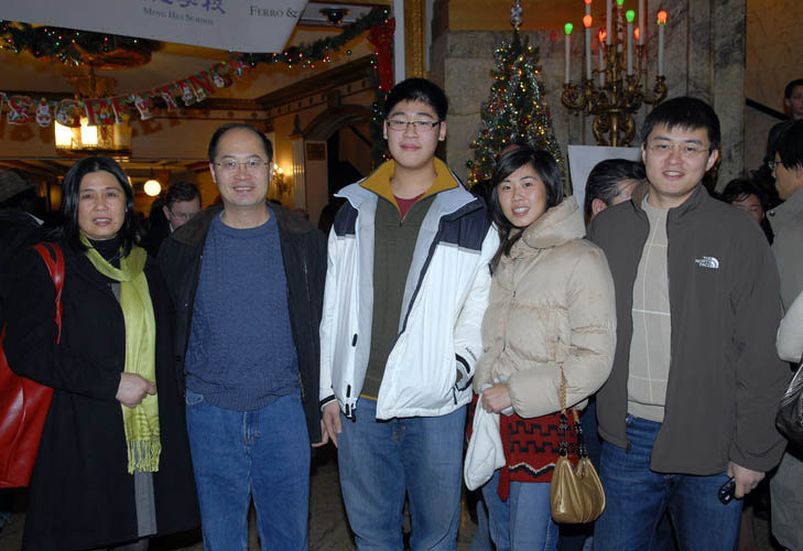 ![]() 大陆移民Ron Liu一家五口来看晚会(左二是Ron Liu,右二是Catherine Liu):圣诞晚会是给孩子们最好的圣诞礼物。 |