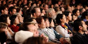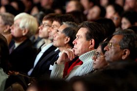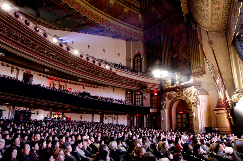 ![]() 圣诞节下午,纽约碧肯剧院内坐满了中西方人士,入神的观看新!唐!人:圣诞晚会。 |