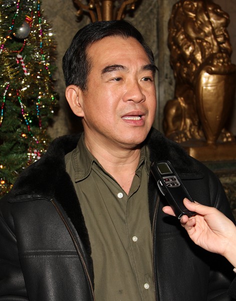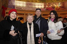 ![]() 古董商海伦•凯诺(Helen Kinoian,左二)与儿子罗伯特•凯诺(Robert Kinoian,右二)、孙女Lucine Kinoian(右一)及儿子的女朋友Carol Halebian(左一)观看于二十六日的圣诞晚会。她认为,晚会富有精神和文化内涵。 |