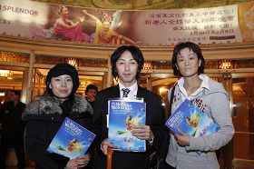 ![]() 日本茶庄经理高桥先生和他的朋友:野田小姐和中居小姐,同看演出。中居小姐说:“所有的组合都是那么的完美。我感觉到了中国五千年的历史所蕴酿出的文化的伟大。” |