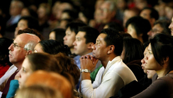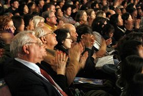 前来观看神韵演出的观众来不同种族、不同文化背景,以及来自五湖四海的各界华人;其中不少是世界杰出艺术家和文化界人士。每场结束时,都听到观众对晚会的赞誉如潮:“这是世界一流演出”,“美极了!”,“演出太好看了,好的超出了想象”,“这演出真为华人争气……;著名小提琴家Soovin Kim说:“毋庸置疑这是一场伟大的演出!”
