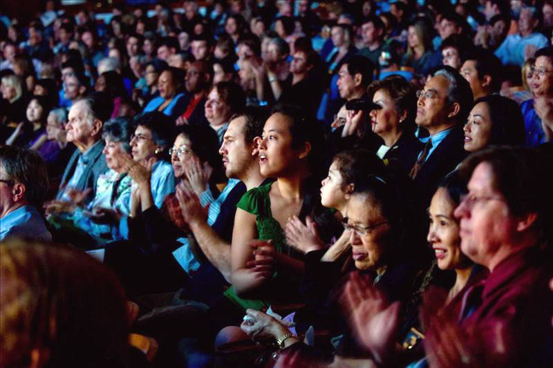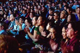 ![]() “神韵巡回艺术团”在劳德岱堡市布洛瓦表演艺术中心演出。图为演出后演员谢幕。 |