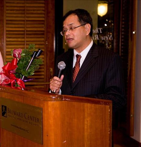 ![]() 迈阿密台北经文处处长谢其旺先生参加了晚会前的嘉宾招待会,并观看了演出。 |