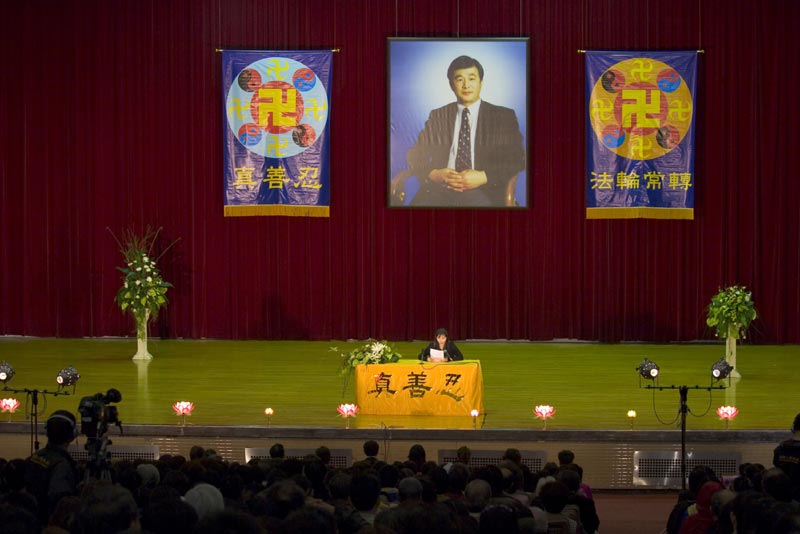 ![]() 将近七千五百位来自台湾各地的法轮功学员,齐聚台中市中兴大学惠荪礼堂,举行一年一度的修炼心得交流大会,法会现场庄严肃穆 |