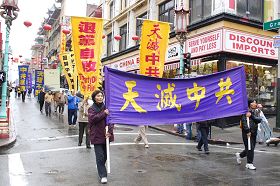 ![]() 退!党!游行经过中国城 |