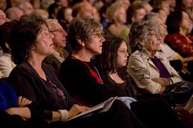 ![]() 大陆移民Laura 刘(左一)表示:“在圣诞、新年的节日里,西方人可以去教堂庆祝,现在我们生活在海外的华人们,有了神韵晚会,有了自己的庆贺方式,真的是一种感激。” |