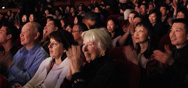![]() 美国航空公司工作的杜荣光(左三)表示,看完节目感觉精神很放松。他说,这个演出很纯净,而且忠实于真正的中国传统文化,有一种恢弘的光明其实。我们能够感受到导演和演员内在的品质和付出的精神,还有团结的精神。这台晚会把人和人之间的距离拉近了,使我们海外华人更有凝聚力。 |