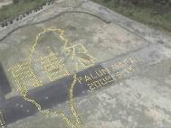 ![]() 约四千名法轮功学员以壮丽优美的「隶书」字体排出「法轮大法好」 |