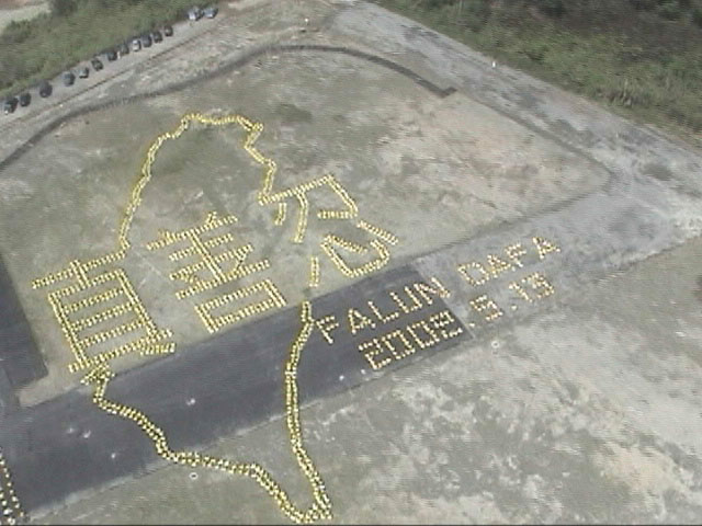 ![]() 二零零五年一月八日,中正纪念堂广场排字「正法」「FALUN DAFA」 |