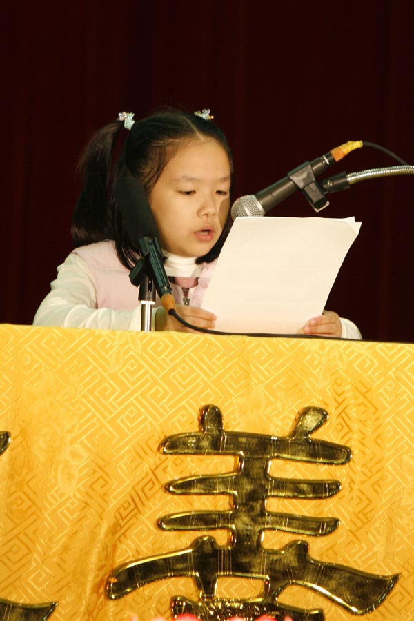 ![]() 基隆九岁的叶采曼说,「我要做一名合格的大法小弟子」 |