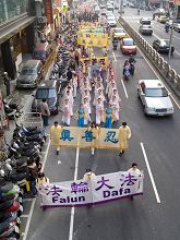 ![]() 展现法轮大法美好的游行队伍 |