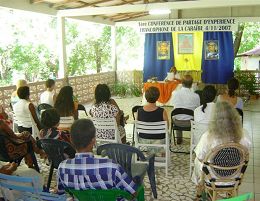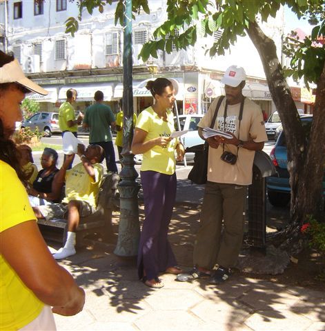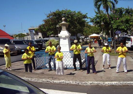 在法会召开前的那个星期四和星期五的白天,学员们举行了集体学法和炼功。十一月三日星期六,学员们一起来到瓜德鲁普省会所在地巴斯-戴赫市(Basse-Terre)。这一天以游行开始,这个游行把巴义夫市(Baillif)政府和巴斯戴赫市连接起来,游行所到之处,学员们都在发放传单、报纸,并向过往的行人和沿途商家讲述法轮功无辜受中共迫害的真相。