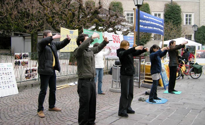 ![]() 奥地利法轮功学员在萨尔斯堡老城举行的信息日帮助人们了解法轮功真相 |