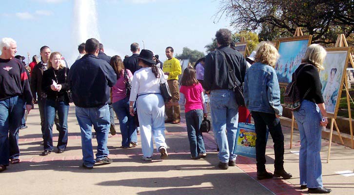 周末的巴博雅公园游人如织,前来观画的人们络绎不绝,人们被真相震撼着,看到中共对善良修炼者迫害的残酷,有人流下无声的泪水,有人询问该如何帮助,还有很多人表示对画展的支持和鼓励。