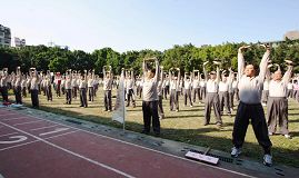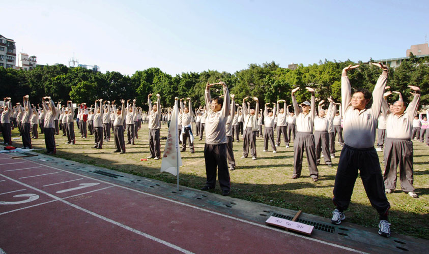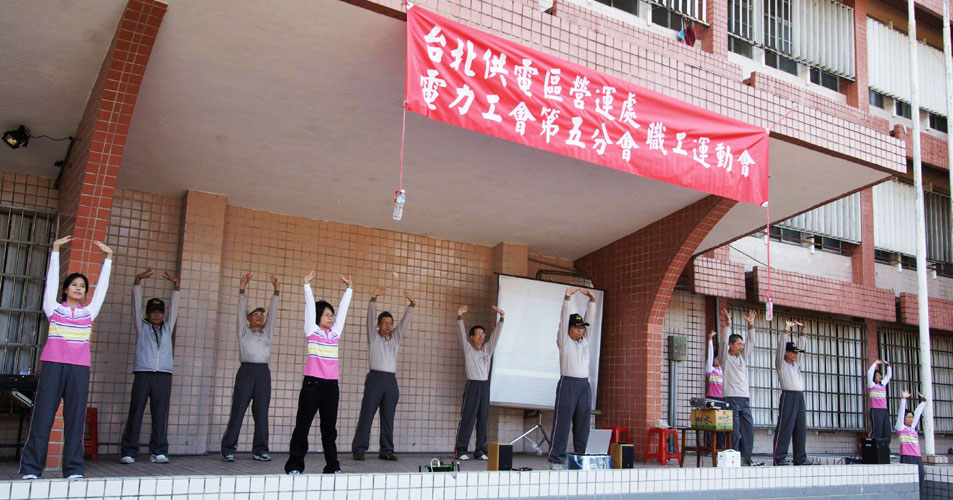 ![]() 台湾电力公司的台北供电区营运处电力工会第五分会运动会上表演与教授法轮功第一套功法 |