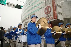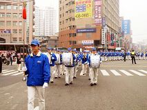 游行队伍从中正公园往火车站的方向沿着省道前进,沿路吸引很多路人、机车骑士及车辆的注意,很多商家以及正在用中餐的民众,被天国乐团雄壮的演奏声音吸引,纷纷出来观望,有一位老太太见旁人赞美天国乐团的演出,她自豪的向人介绍说:「这是法轮功的队伍,我媳妇就是炼法轮功的!」此外,补习班一群大男孩在二楼观看游行队伍,还数度拍手鼓励。甚至公车上有人拿出相机来拍摄。