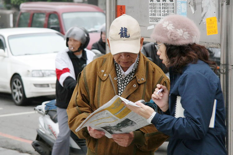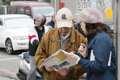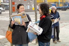 还有几位老伯伯,骑着摩托车经过展板时,将车停下来仔细看内容,在接收到资料、听到解说时,有的表示支持与肯定;有的表示感谢义工朋友的善举,有的表示对中共恶党的唾弃,有的干脆将摩托车停放一旁,亲自到现场参与记者会。