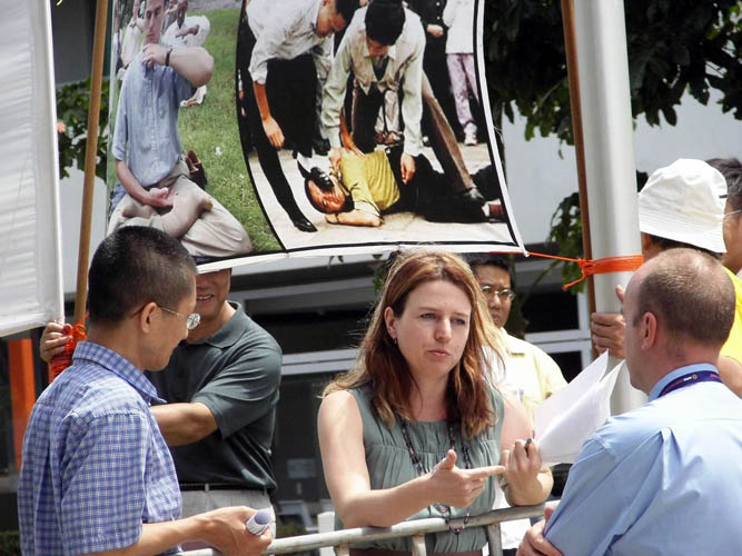 西澳上议院议员、上议院环境与公共事务委员会主席(Standing Committee for Environment and Public Affairs)露易丝•派特女士(Louise Pratt),特地赶到会场支持法轮功学员。派特女士表示,她对法轮功学员的付出与持续不懈的精神感到钦佩,并呼吁其他的政府官员一起关注中共对人权的践踏。她说:“我呼吁参加亚太经济合作会议、来自澳洲和亚太地区的政府官员,鼓励(你们的政府)与中国严肃的对话,除了讨论经济上的事宜之外,更重要的是去调查(中共)对人权的侵害。”
