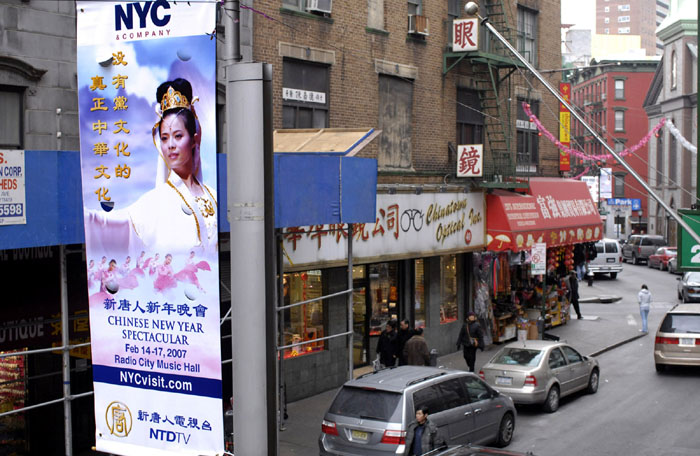西方人很清楚,法轮功不是他们西方的传统,而是地地道道的中国文化,新!唐!人:致力于弘扬中华文化的努力得到了纽约市政府的大力支持。纽约市长把新!唐!人:全球华人新年晚会在纽约首场演出的2007年2月14日定为“新!唐!人:华人新年晚会日”。还有,印有纽约市旅游局字样的推介新!唐!人:新年晚会的大批展画悬挂在中国城的灯柱上,更是别具一格的风景。最有意思的是展画上面的几个大字:「没有党文化的真正中华文化」。