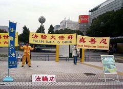 这两天正值中国的传统新年,名古屋的中领馆在市中心荣的久屋广场(Hisaya Hiroba)举行第一届中国新年庆祝活动。法轮功学员借此机会向日本民众和在日中国同胞洪法讲真相,除了在繁华街道边上打出横幅、放置看板并做功法演示,还在通往中领馆活动的出入口附近发新!唐!人:全球华人新年晚会的介绍传单,并向大陆同胞传《·九·评*》、劝三:退.。