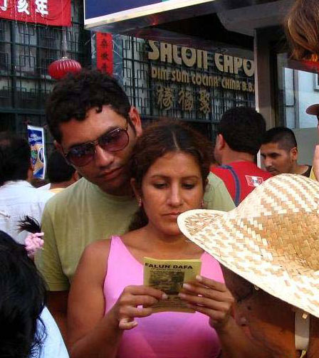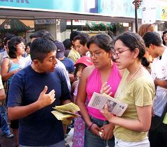 ![]() 法轮功学员向人们发放传单并详细讲述发生在中国的迫害真相 |
