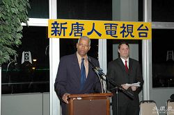 ![]() 美国国会众议员汉克•约翰逊在贵宾招待会上致词 |