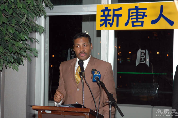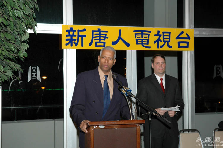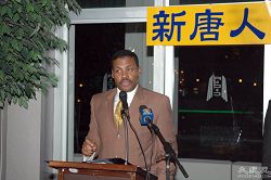 ![]() 马丁路德金中心总裁艾萨克•法瑞斯(Issac Farris)在贵宾招待会上致词 |