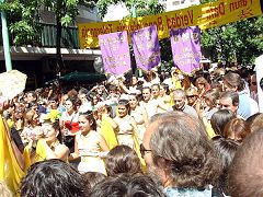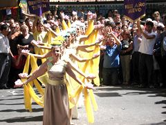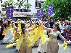 ![]() 法轮功学员在中国城一边游行一边表演,场面壮观 |