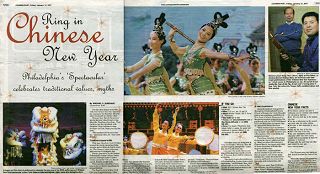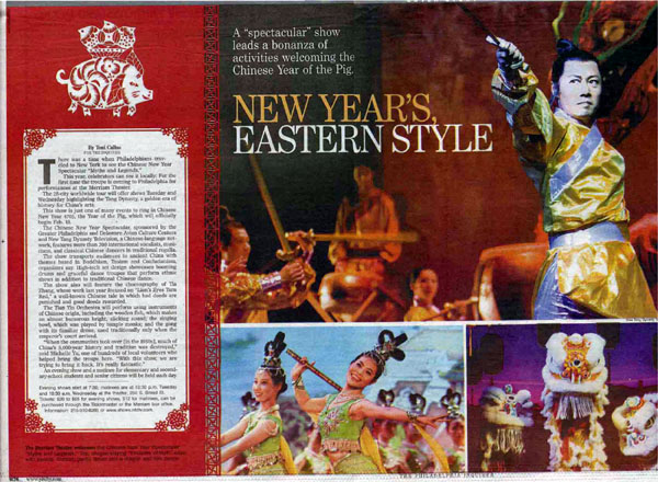 费城都市报(Metro)记者布阮.麦克罗尼( Brian Mccrone)于新年晚会演出的第一天一月二十三日报导说:这是一个难得的机会让世界从全方位看到中国文化的风采。对上千的观众来说,华人新年晚会把古老的世界带回现实。纽约的新!唐!人:国际演出在费城南百老汇街的美丽安剧院演出两天、四场。他们的团队由二百多歌唱家、音乐家和舞蹈演员组成,演出去年被列为美国第七大演出。