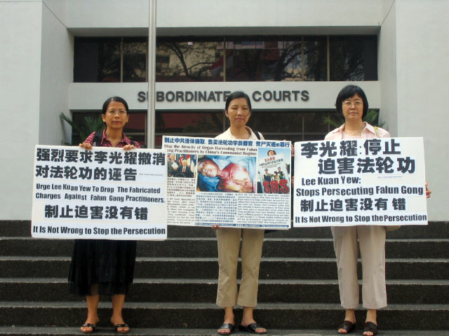 ![]() 新加坡法轮功学员在初庭外抗议迫害 |