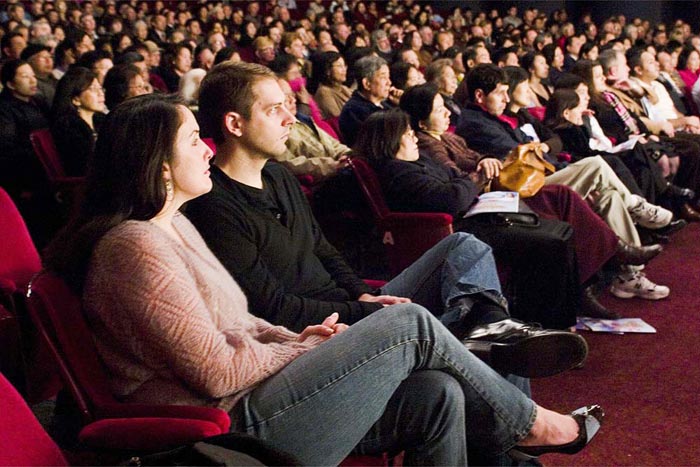 一位领位员泪流满面看完了全场,从内心真正的发出共鸣。值班的大个警察,一边竖起大拇指示好,一边不好意思的也在抹去脸上激动的泪水。一位媒体记者看完之后对新!唐!人:新年晚会工作人员连续的说:“太好了,确实很好,非常专业,我想要看的就是这样的演出,明年我会再来。”一对华人夫妇在中场休息的时候,便开始兴致勃勃的向工作人员说:“节目非常的好,还有服装好,表演好,天幕好,我们从内心发出的喜悦。个别歌词有提到法轮功,我们能够接受,法轮功这么美好,我们很想知道哪里能找到法轮功?……”