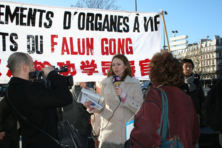 “为人权而行动”(ADH)协会主席蓝佩蒂女士(Marie-Francois Lamperti)表示:“中国是全世界侵犯人权最严重的国家,其中包括人的生存权。在中国有大量的无辜的法轮功学员被判刑。我们的协会在这里就是要揭露这些侵犯人权的罪行。”