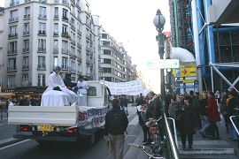 法轮功学员们打出“停止活体摘取法轮功学员器官”、“正在中国发生的……”、“国际调查法轮功在中国遭受的迫害”等标语,手持揭露迫害的真相展板和被迫害致死的法轮功学员遗像,告诉世界正在中国发生的野蛮罪行。法轮功学员还用法文高音广播加拿大独立调查团对中共活体摘取法轮功学员器官的调查报告。许多听到真相的人们纷纷索要相关资料,诸多媒体及民众对真人模拟酷刑拍照。很多人表示这种揭露迫害的方式非常好,非常直接的控诉在中国发生的这些罪行。一对母女在法轮功学员的队伍经过时不停的拍手表示敬意和鼓励。游行队伍停驻时,很多民众走到展板前仔细阅读,看后对学员们说“谢谢”。一位法国小伙子边听着高音广播边对他的同伴说:“法轮功从来不说谎。”