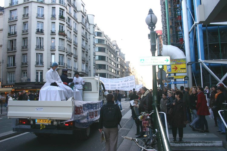 “法国法轮大法协会”负责人唐汉龙表示:“在中国发生的器官摘取事件中,对法轮功学员的器官摘取占百分之七十五,所以情况特别严重。我们参加这次游行的目地就是向世人讲清真相,向媒体、向政府讲清真相。”