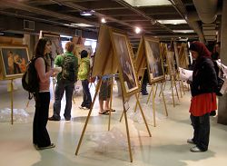 据画展主办者介绍,在这里展出的近三十幅画是“真善忍画展”的一部份。画作均由法轮功修炼者中的艺术家创作,系列反映了修炼法轮功给人们带来的美好、法轮功修炼者对真善忍信仰的坚定,以及修炼者在中国大陆无辜被中共非法关押、监禁,遭受种种酷刑折磨的场面。