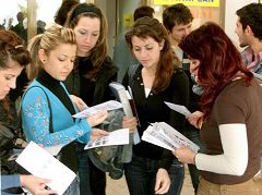 ![]() 拿到法轮功真相传单的人们立刻阅读起来 |