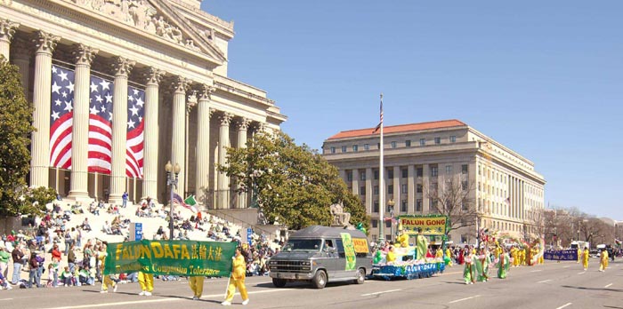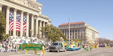 ![]() 法轮功学员的队伍行进在美国华盛顿特区市中心的宪法大道上 |