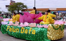 ![]() 法轮功学员的花车设计以绿色为基调,与圣•派翠克日游行相呼应 |