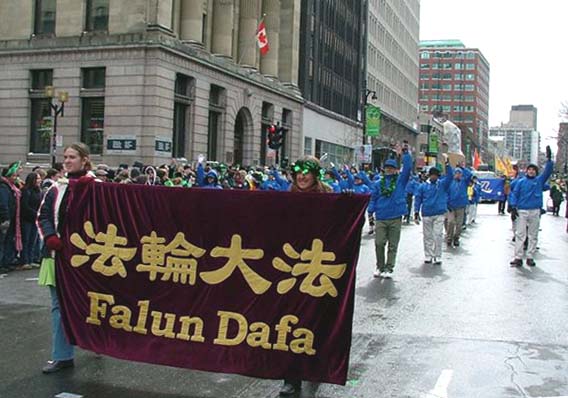 大型横幅清晰的向人们传递着法轮大法的修炼原则“真、善、忍”。“法轮大法好”的歌声从始至终伴随着观看游行队伍的人们,播撒善的信息与美好。狮子舞、传统腰鼓、法轮功的功法演示,为持续了一百八十多年的游行队伍注入了东方的神韵。