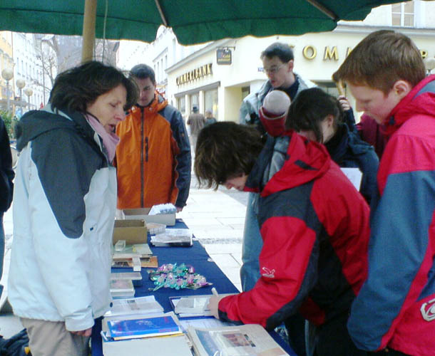 法轮功学员向市民们介绍了由加拿大前亚太司司长David Kilgour和国际人权律师David Matas公布的调查报告。报告证实中共大规模活摘器官的事情确实存在,并仍在持续着。面对这样的事实,人们无不愤慨。很多人马上以签名的方式来呼吁结束中共恶党的暴行。
