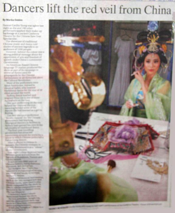 二十一日由该报编辑的文章说,中国新年晚会二十日在堪培拉举行,该报记者当天傍晚在堪培拉剧院的后台化妆室,采访了舞蹈演员茜茜(Cecilia Xiong),并说茜茜显得格外光彩照人。报导说,这场展示传统的中国音乐和舞蹈的演出,给一千二百名现场观众讲述了古老的传说。