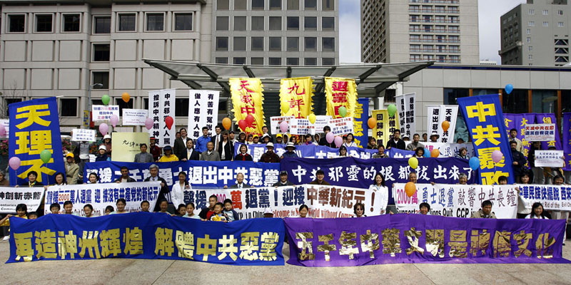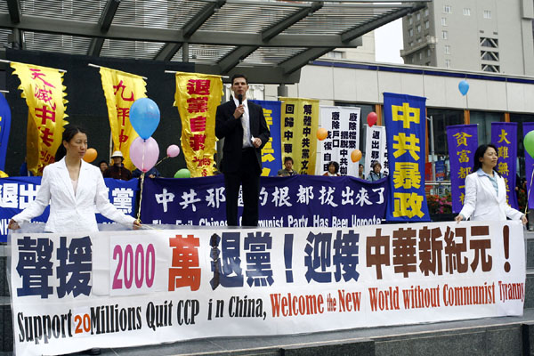![]() 参加集会的人士并举行了游行,声援二千万人退出中共 |