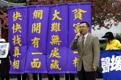 当天发言者踊跃,有刚从中国大陆来美不久的吴女士,关心中华民族前程、来自现居旧金山的印尼华侨关先生,及希望.之声国际广播电台的著名评论员兰述。吴女士讲述了在中国因为散发法轮功真相资料而遭非法关押,及酷刑折磨的亲身经历。关先生则表示希望中国人能找回传统的文化,并有个美好的未来。