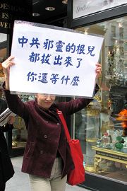 经过联合广场的西方人士被壮观场面吸引,在观看横幅信息的同时,有的询问详情,当知道已经有两千万中国人因看清了中共邪恶的、杀人面目退出中共时,他们表示,这真令人高兴。
