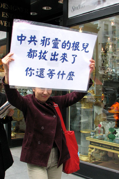 北加州全球.退:党!服务中心的代表马有志表示,现在已经有二千万中国人精神觉醒。他们看清了共产党的邪恶真面目,决定不再与其为伍、不再成为中共的帮凶,不再被它奴役。退出中共已成为当今中国人最关心的大事。每月退出中共的人数都超过一百万,中共邪*党-的根已经被拔起来了。