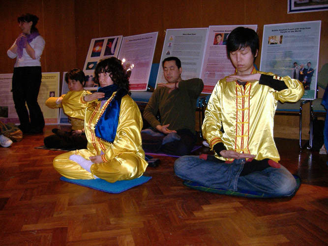 法轮功学员们进行了功法展示,并介绍法轮功正在中国遭受迫害的消息。学生对迫害的事,尤其是剑桥大学二零零六届毕业生娄宏伟的遭遇,表示震惊。二零零零年六月,娄宏伟和她的丈夫卜东伟因为给中共中央写信反映法轮功的真实情况而被中共非法劳教一年。二零零六年五月,卜东伟在中国再次遭到逮捕,警方在没有任何证据的情况下,对他非法判劳教两年半。北京的警察还叫嚣,娄宏伟如果回国也会被判刑,致使她无法回国。他们两岁的女儿只能由年迈的祖父母照看。