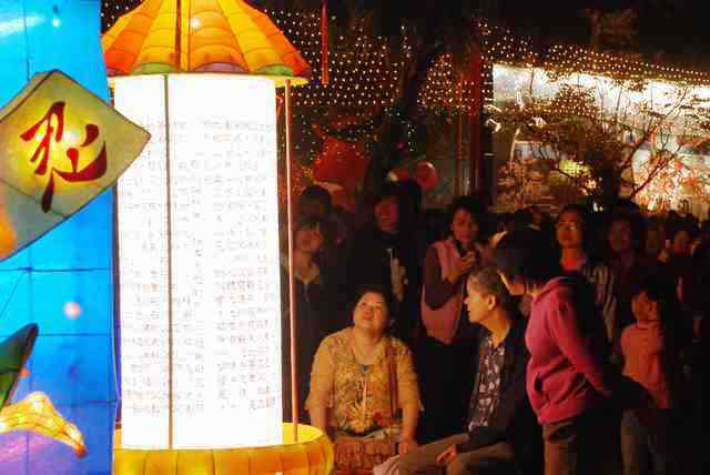在嘉南平原广阔的“台湾灯会”会场上,一片灿烂灯海,天空繁星点点,参观人潮汹涌,一片繁荣升平的热闹景象。一位站在法轮功学员制作的“论语”花灯前久久不去的老人,赞叹着:“我从来没有见过这样的花灯,太美妙了,站在这里就是有种说不出来的很舒服的感觉。”