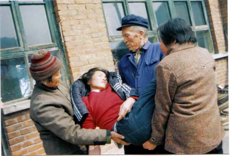 正月十一,年迈的老母又带着儿媳和一个侄女再一次来到县城,找到“六一零”王福才家,要求释放曹继伟,她们在外面叫门,屋里王福才的妻子、儿子不停的骂,并威胁道:“你们再不走,就报110来抓你们”,她们三人只好往外走,刚走到胡同口,王福才、戴春杰就带来一帮警察,凶恶的问她们叫什么名字,干什么,不由分说,这帮人就拉扯她们,打她们,她们三人被打倒在地,“六一零”王福才、公安局戴春杰指使恶警把曹继伟的妻子、大姐弄到涞水县公安局大院内,继续毒打、把她们按倒在地,往她们嘴里塞石子、烟头,后关进涞水县拘留所。