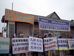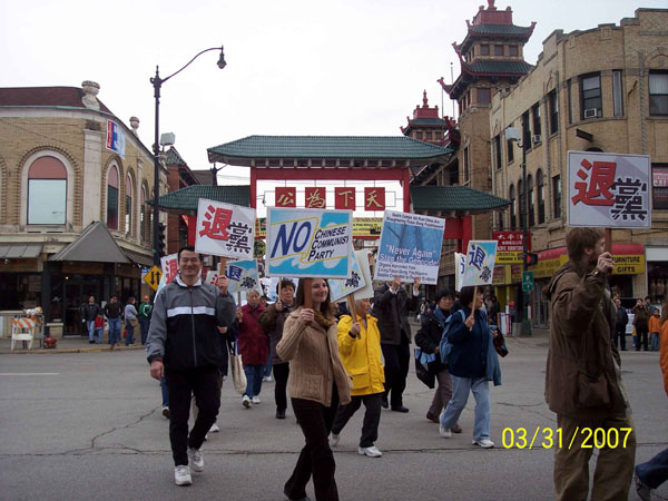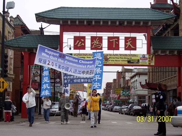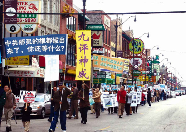![]() 在中国城举行的“真相是机缘,退!党!保平安”主题游行 |